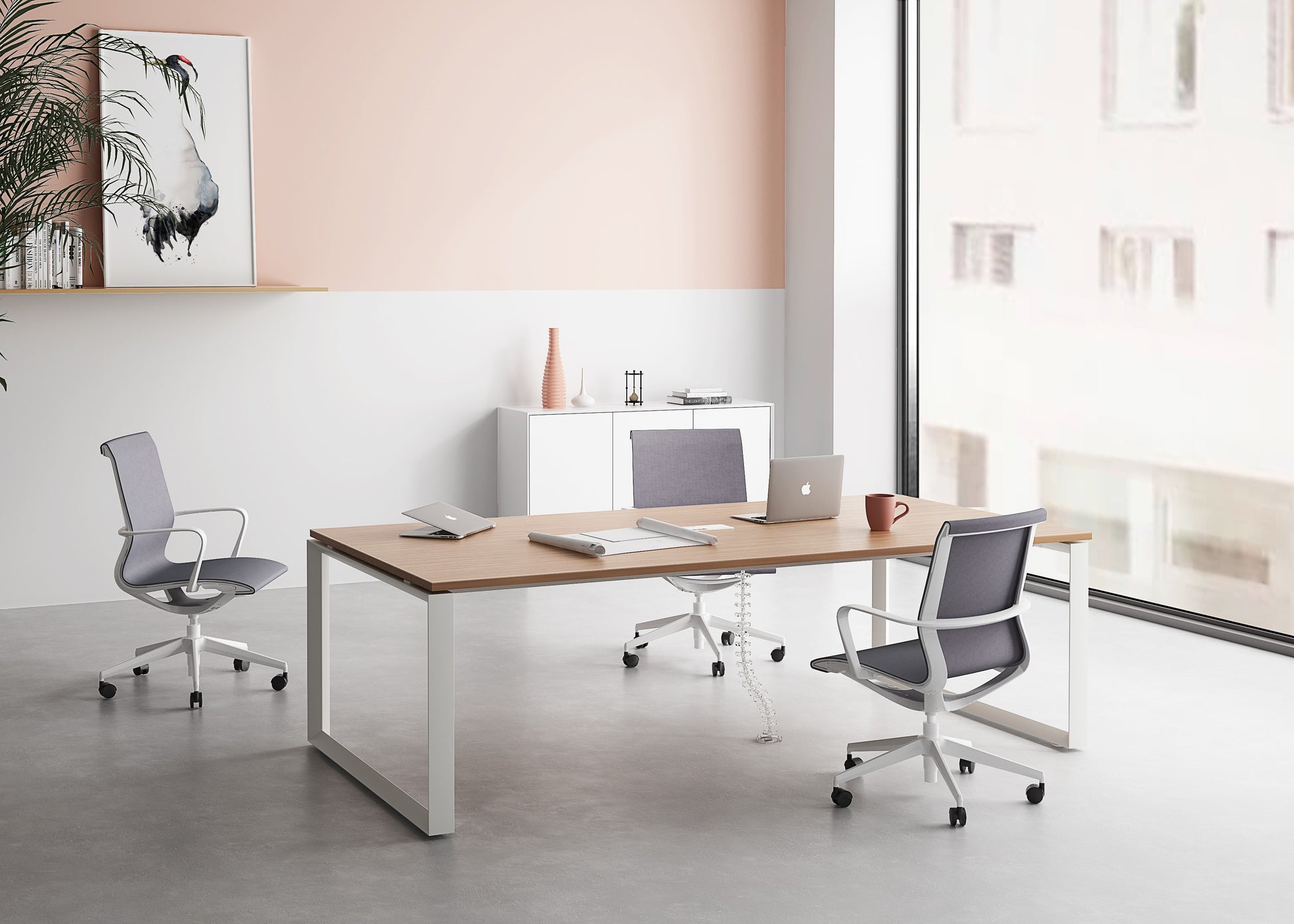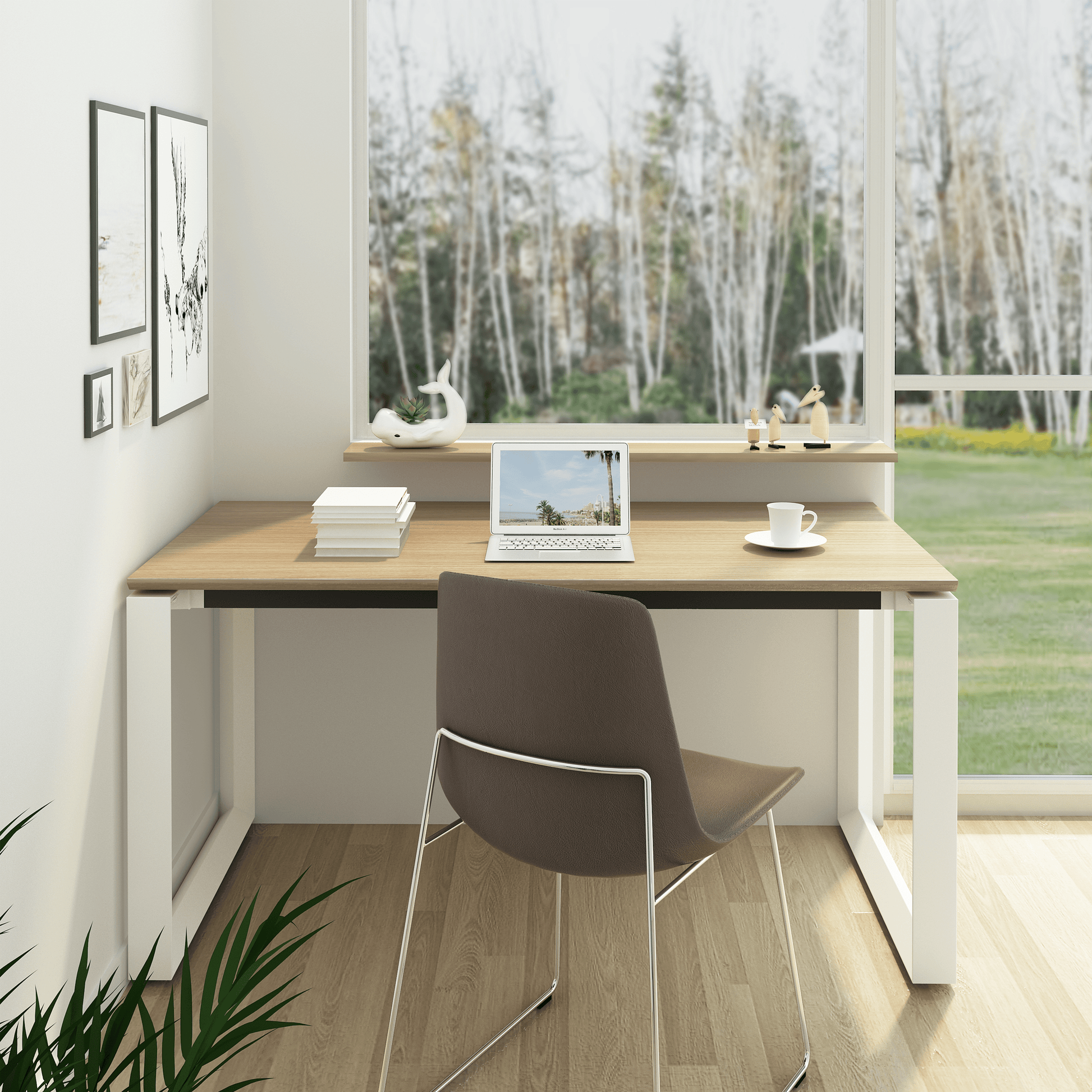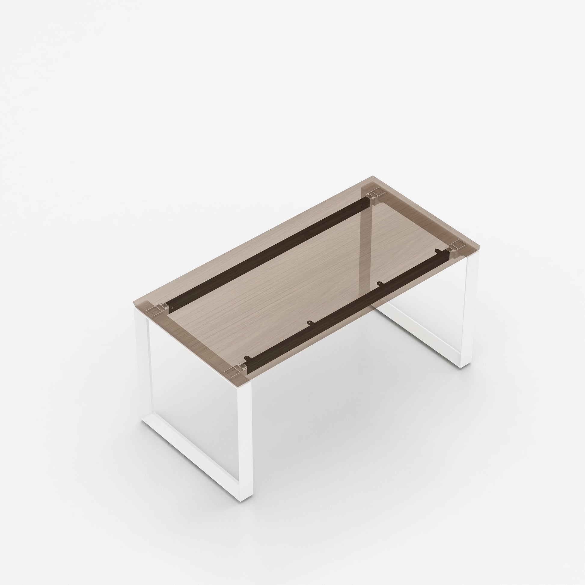 Përfshin: 2 këmbë metalike, 1 shufër lidhëse anësore, 1 set tabaka kabllosh (keel tray) dhe kapëse kabllosh. Sipërfaqja e tavolinës: trashësi 25mm, cep PVC i pjerrët 45°, panel kompakt.