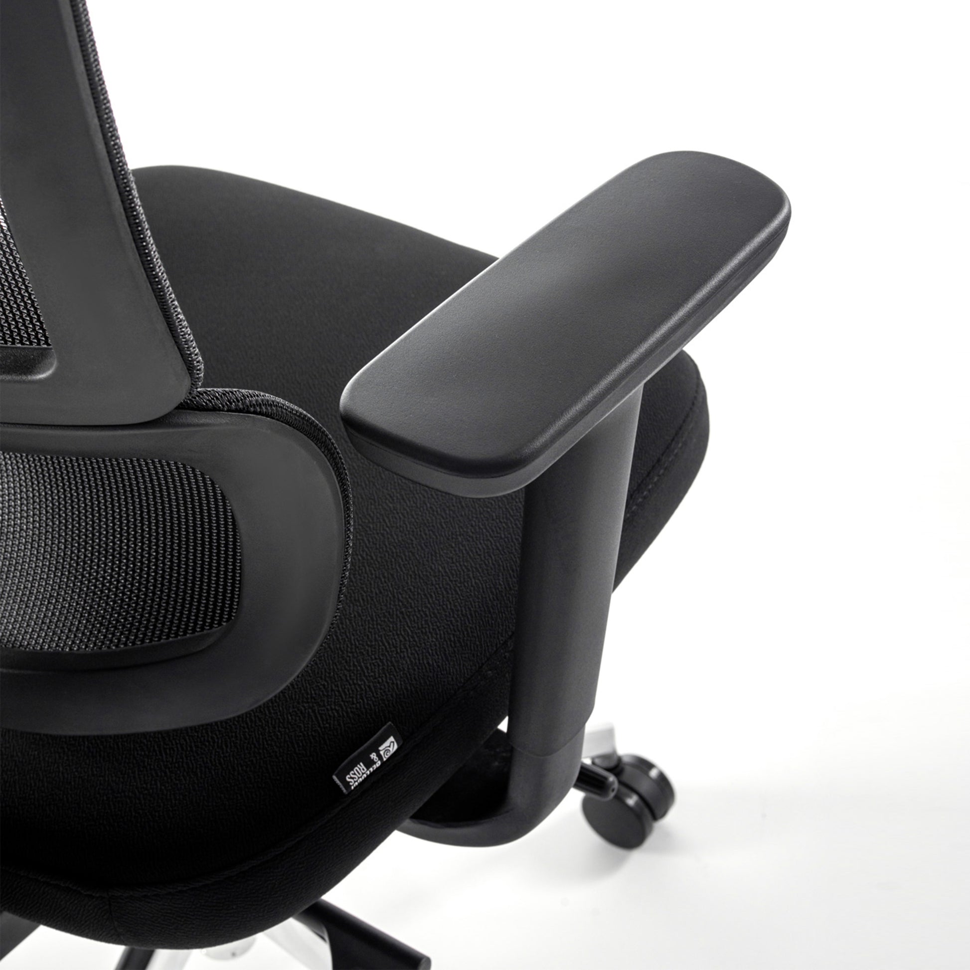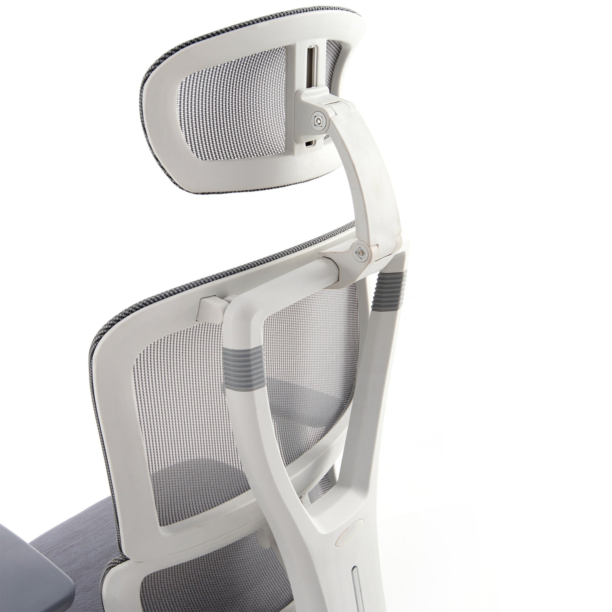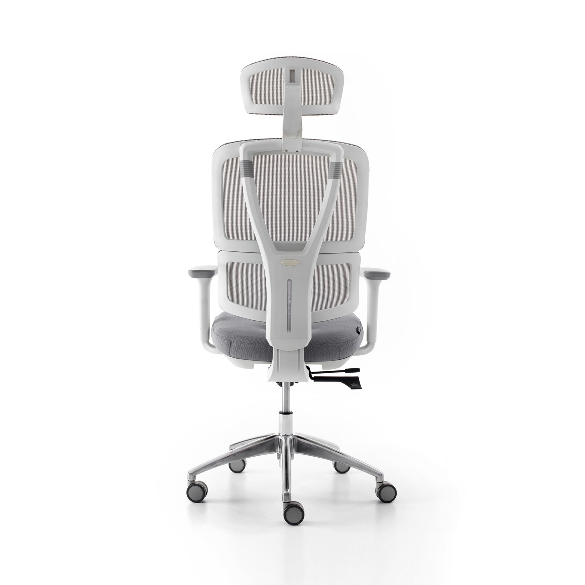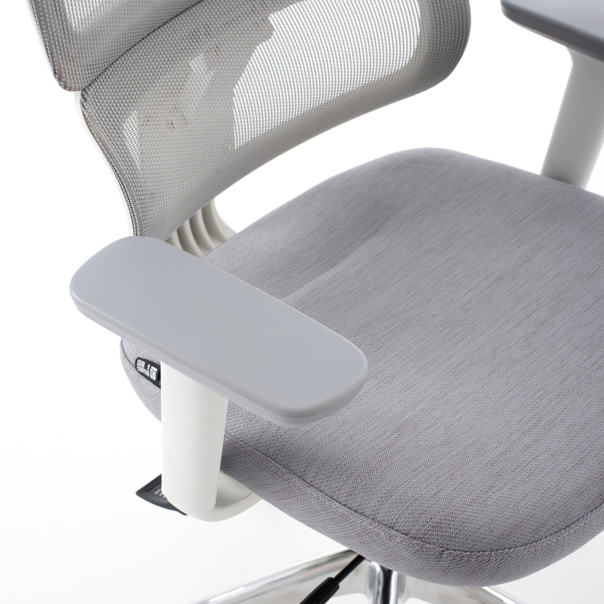 Karrige ergonomike rrjetë me mbështetëse të lartë, ngjyrë gri e hapur, certifikuar BIFMA (mbështetëse rrjetë e përmirësuar).