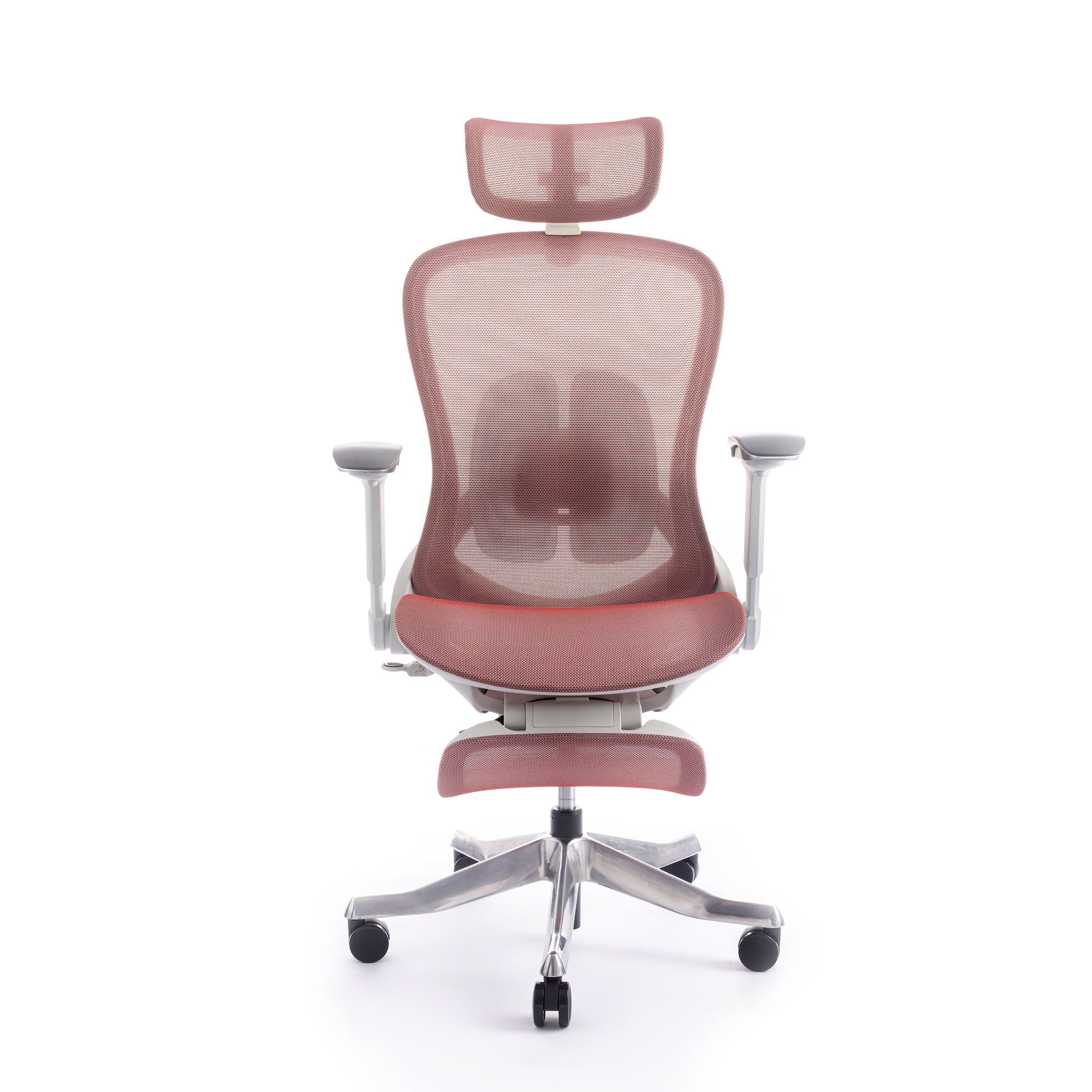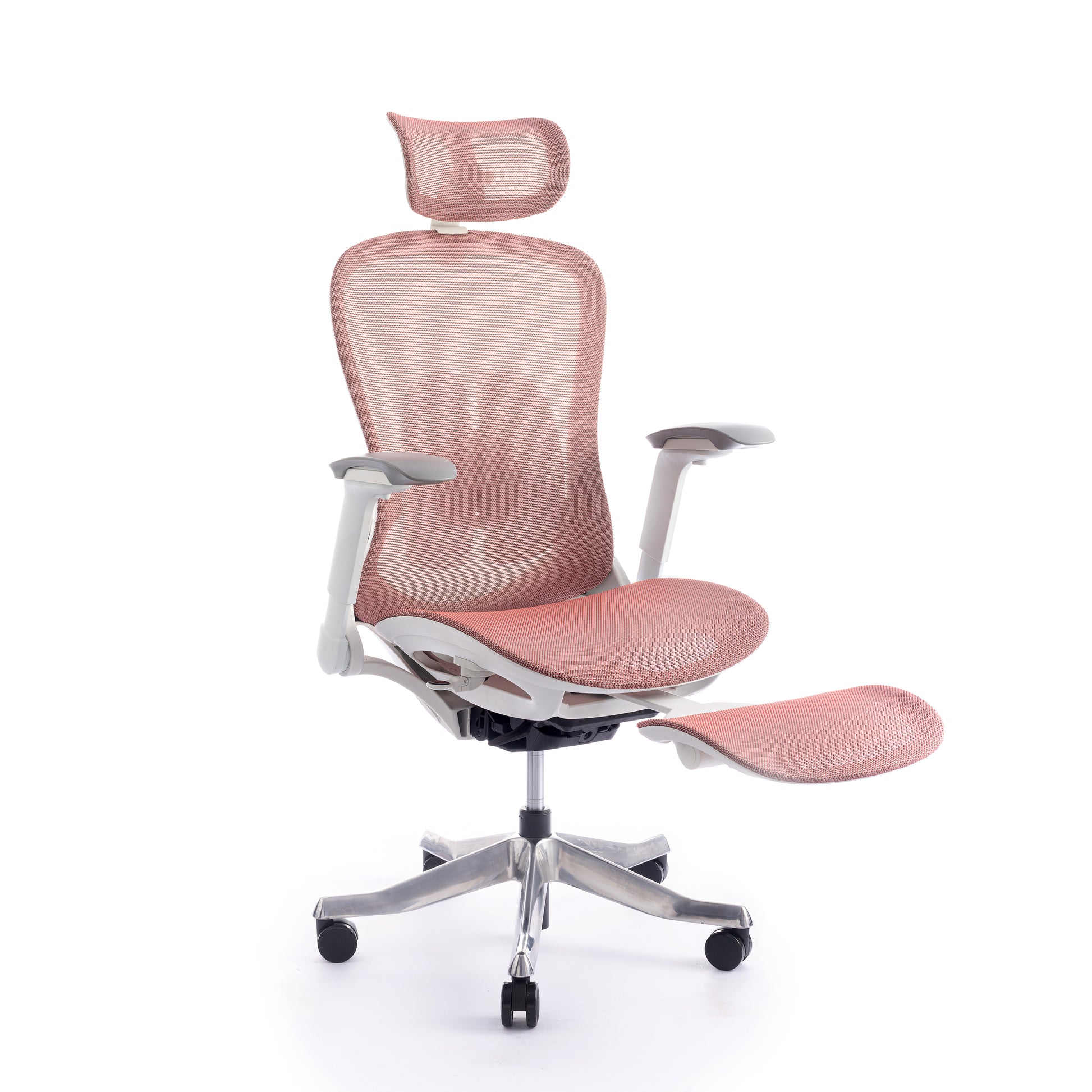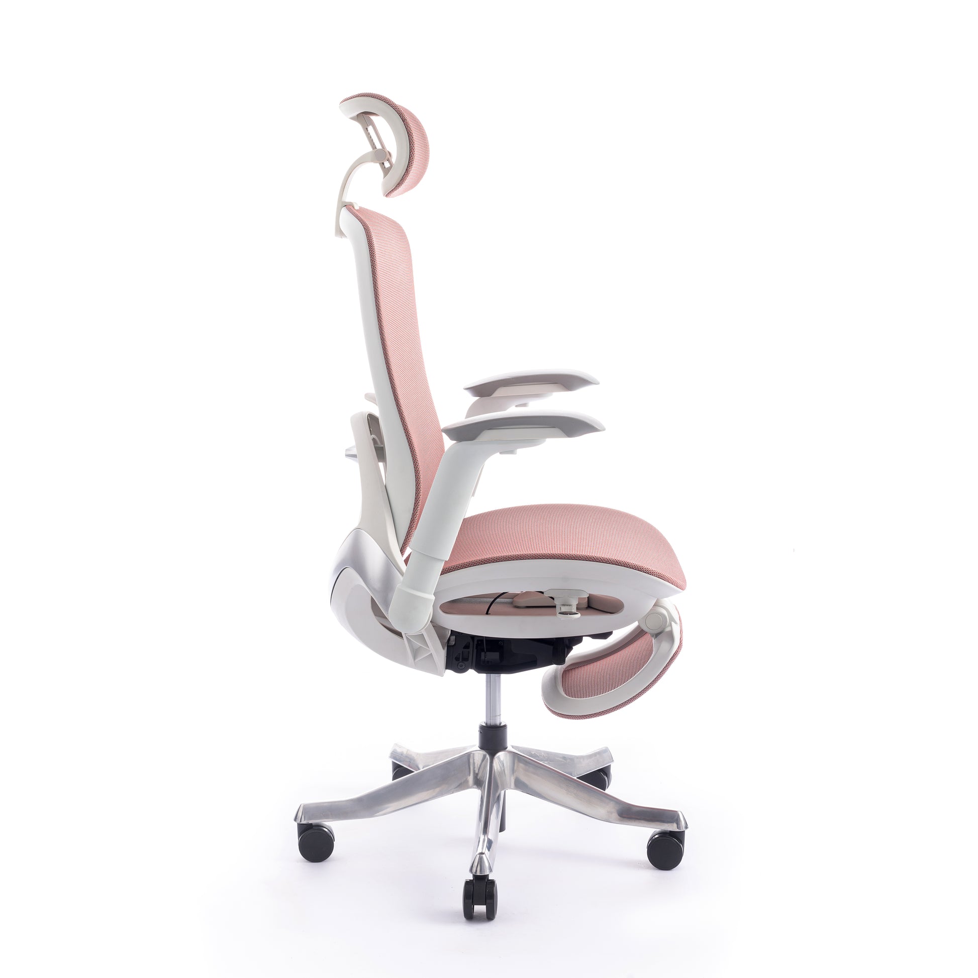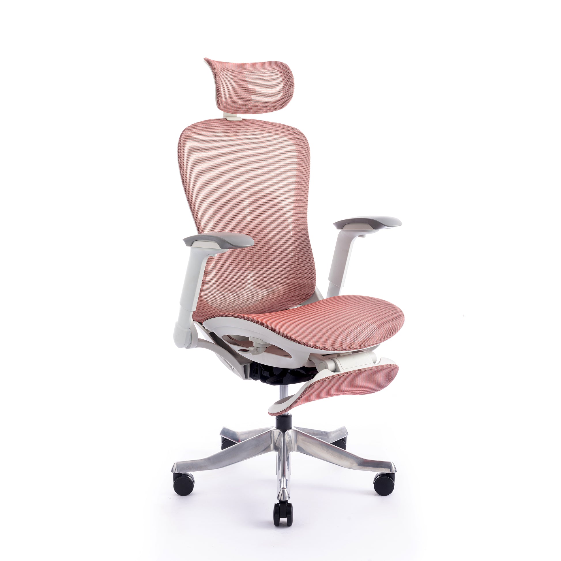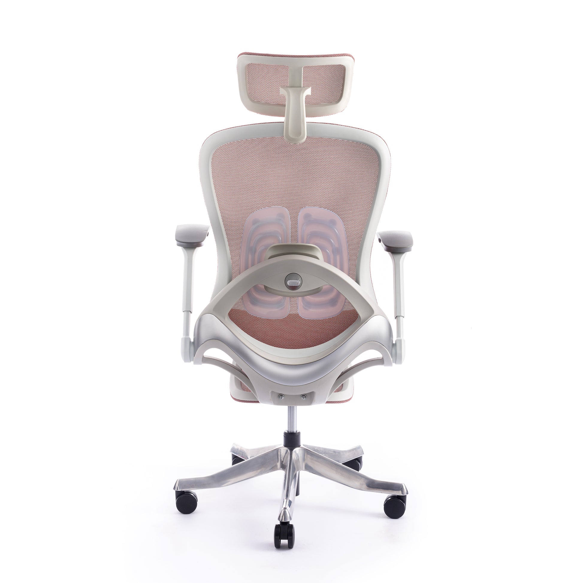 Mbështetës shpine: Kombinim PP + PA + ABS me rrjetë najloni, kënd rënie midis 105° dhe 125°. Mbështetje lumbare TPE, e rregullueshme përpara-mbrapa dhe lart-poshtë.